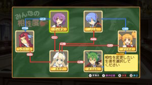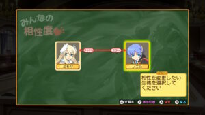 ちなみに2人以上に嫌われるとステータスが下がるので、戦略的には嫌い線を分散させたほうがよろしいですよ。逆に好き線は集中させるとスキルがいろいろ使えます。